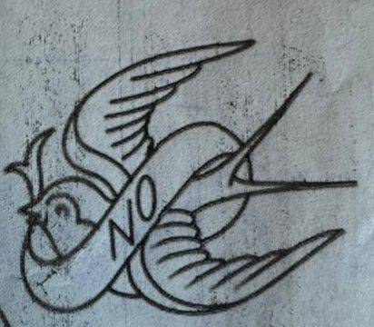 I hosted my friends Kinsey and Max in Philly before and after New Year’s, and, unsurprisingly, once Max got here we gave each other hand poke tattoos. I started doing this to myself (badly) back in 2019, though my interest has waned and waxed through the years. In that time Max has been my most consistent tattoo recipient, getting at least as many as I’ve done to myself and maybe more. Since Max was here and since Kinsey was going to have fomo if she left right before we did tattoos, she pushed her scheduled departure back. Max and Kinsey exchanged little squiggles (they drew them, I tattooed) and I gave myself a take on the Amazing Bone from the William Steig book of the same name. Then, before Max left the next day, he and I gave each other spiral tattoos. This was the first hand poke that I’d gotten in return from Max and I think he did a great job—jury is out if the less aggressive (less painful) method that we landed on this round will have staying power, but I am optimistic. Ultimately these tattoos are less about the art and more about some kind of connection. Blood brothers vibes I guess?1 Yikes.